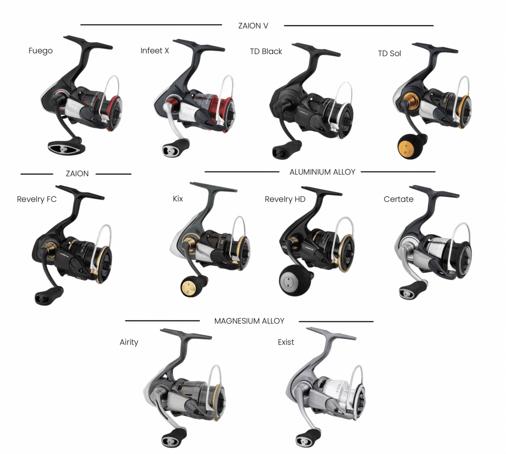 Daiwa’s Australian-market inshore reels fall into four material categories, each designed for a specific balance of weight, rigidity and torque transfer.