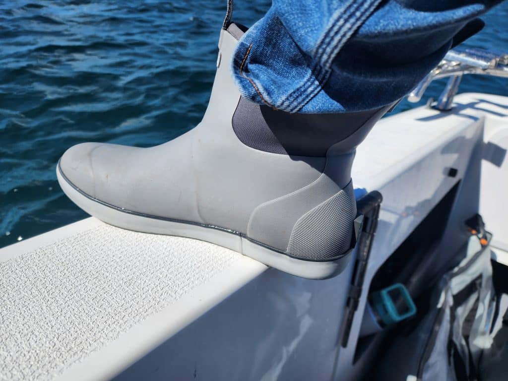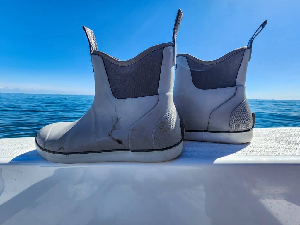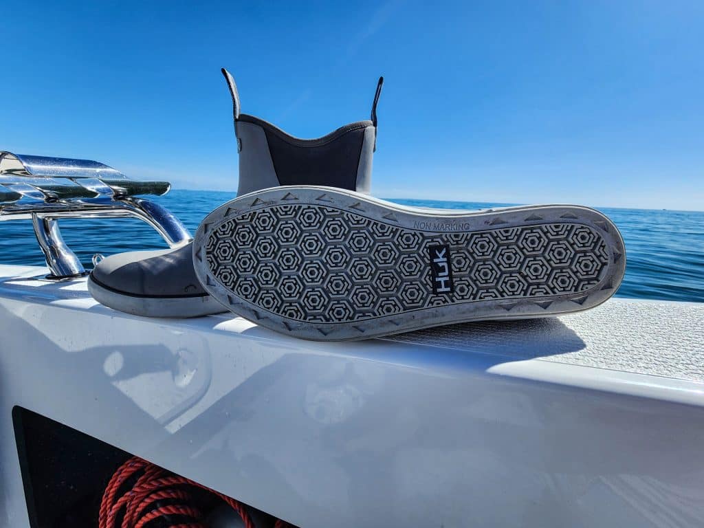 I’ve navigated various terrains, weather and other challenges during my fishing expeditions. I’ve had all manner of clothing to protect me against the elements but the thing I was missing was a great pair of boat boots. About five years ago I noticed almost all American salt and freshwater anglers wearing these cool-looking boots that looked like a rubber Blundstone. My cousin and I both thought they looked great and seemed like they would be comfortable. It was at a stage in my life where I was well over wearing sneakers on a boat and the longer-style Bogs boots I wore in winter were just too bulky. The brand was Huk and we tried unsuccessfully to buy them and have them shipped over here, but we couldn’t even do it on Amazon. They were an American product we didn’t have access to.