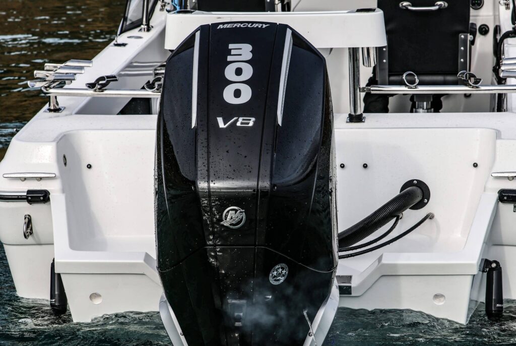While I have spent only 40 hours with this engine, I am truly in love with it. First off, it looks amazing and anyone who denies aesthetics play a part in engine choice either has no style or they’re lying. But more important is the performance – it’s a true powerhouse that provides highly responsive control of this hull and it’s a big reason why the ride is so good. Most people who come in the boat comment that it’s like a race car – they go together beautifully. It’s ridiculously quiet for a 4.6-litre V8, and at idle if you haven’t switched into Sports Mode for a gruntier V8 sound, you wouldn’t even know it’s on. At speed the sound is amazing – it sounds powerful but never loud or annoying. The Advanced MidSection (AMS) on Verado engines greatly reduces noise and vibration, which all adds to an amazing experience in this boat.