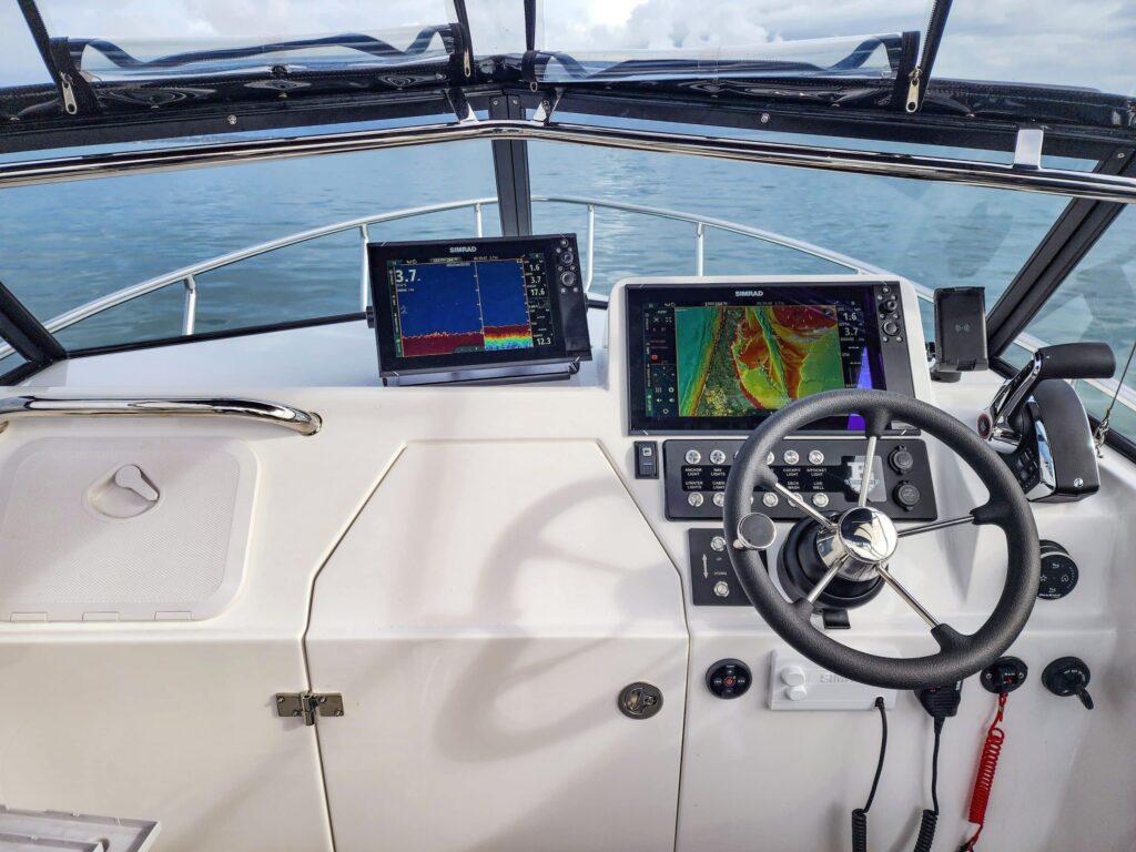 The Precision 9 Compass is quite large but can be mounted in the cabin and still provide outstanding connectivity. It’s part of Simrad’s autopilot system, which I also installed. This is a great feature that allows me some hands-free and precise control while under way, so it’s great for long runs. I also installed a Simrad HALO20+ radar. Radar is a great safety feature to monitor locations of other boats on a busy bay when driving at night or in fog. With its long-range coverage, I can see if a boat is sitting on a reef or mark I want to fish before I bother running out to it, saving me time and fuel. I’ve never had autopilot or radar before but they are two very luxurious and useful features that I am loving.