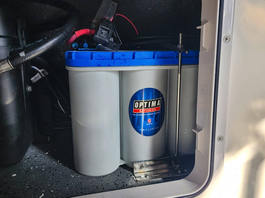 As a cranking battery, the 900CCA rating is more than enough to fire the Verado instantly, every time. Even after a long drift with electronics blazing and pumps running, I’ve never had an issue getting the engine going. The battery recovers quickly and holds charge reliably, even in winter conditions or when the boat sits for a couple of weeks between trips.