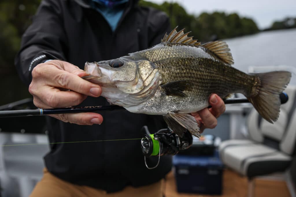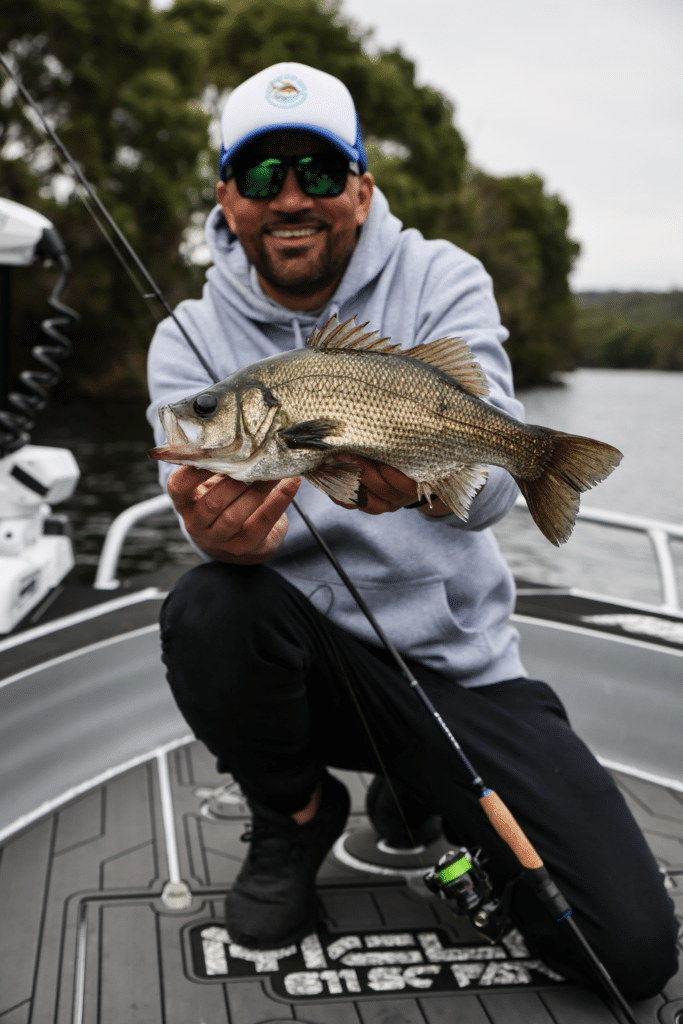 On my first few outings, I caught a couple of small bream, but the real test came when I hooked into a 44cm estuary perch. This fish ran straight into the thick structure, and I was thankful for the smooth and consistent Duracross drag that offered measured resistance throughout the fight, even as the perch tried to pull me back into the snags. It’s a high-performance drag system that performs well across the entire fight, and I managed to bring the perch to the boat without any issues.