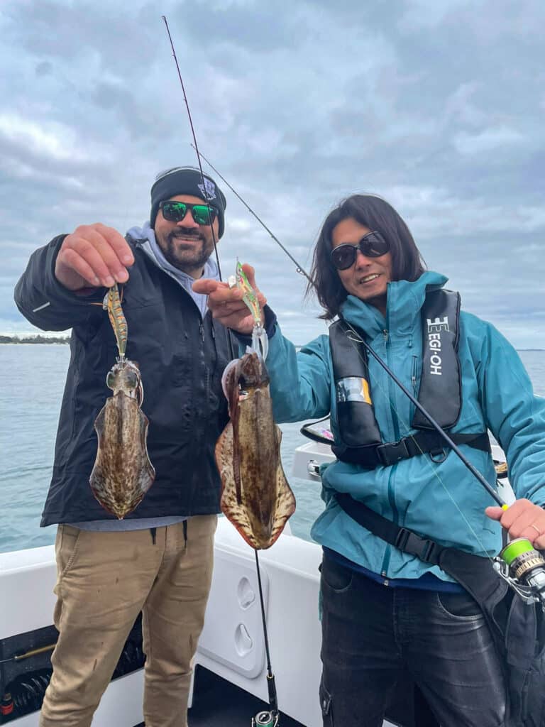 Eisuke and Nobuto Ganaha, the international sales manager, visited again in July—one of the worst months for squid in Melbourne. The water can be dirtier and colder, and the squid tend to be smaller. However, we had stable weather on the one day they were here (which is rare), and the water clarity was pretty good, if not ideal.